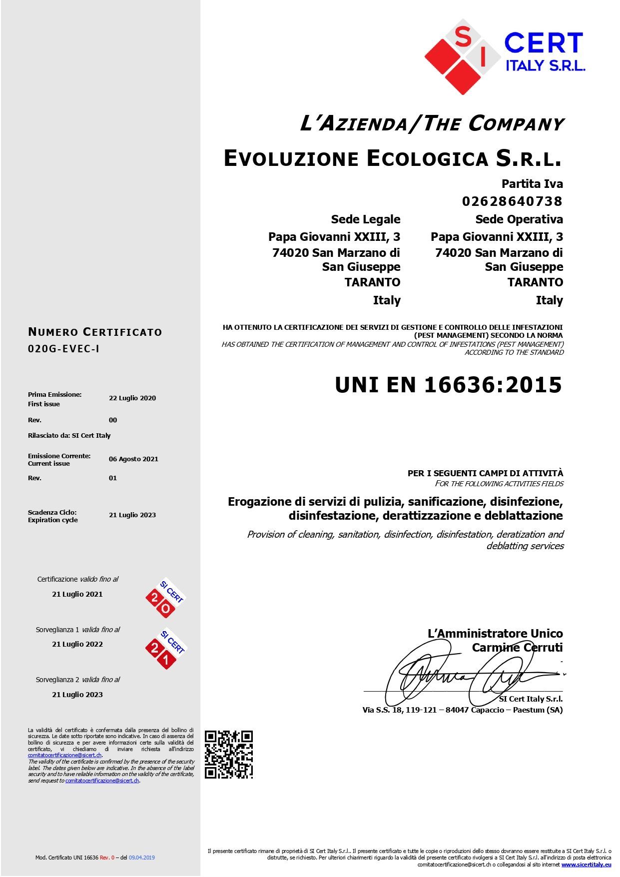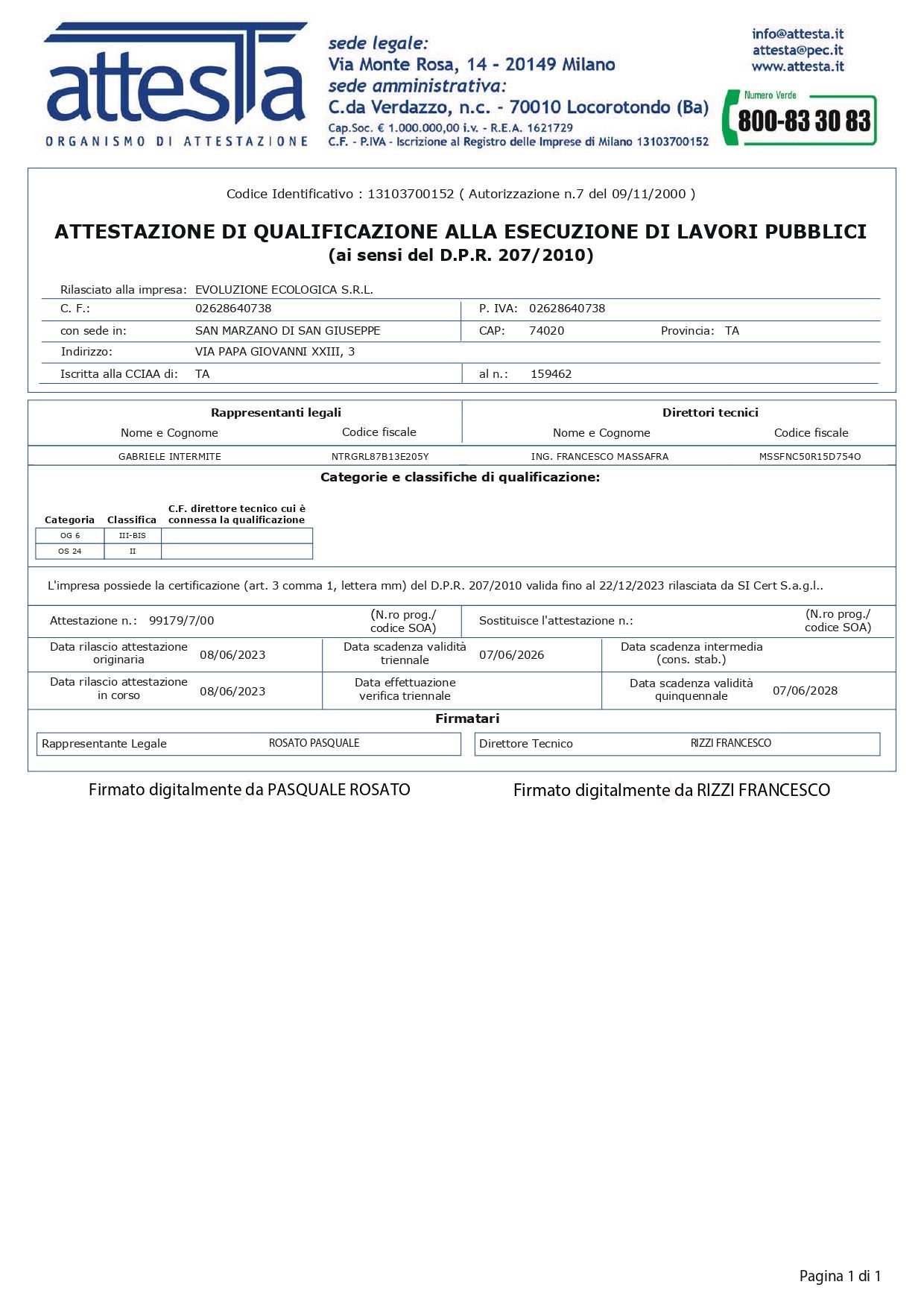 - ATTESTAZIONE SOA Categoria OG6 Class IIIbis - OS24 Class II;