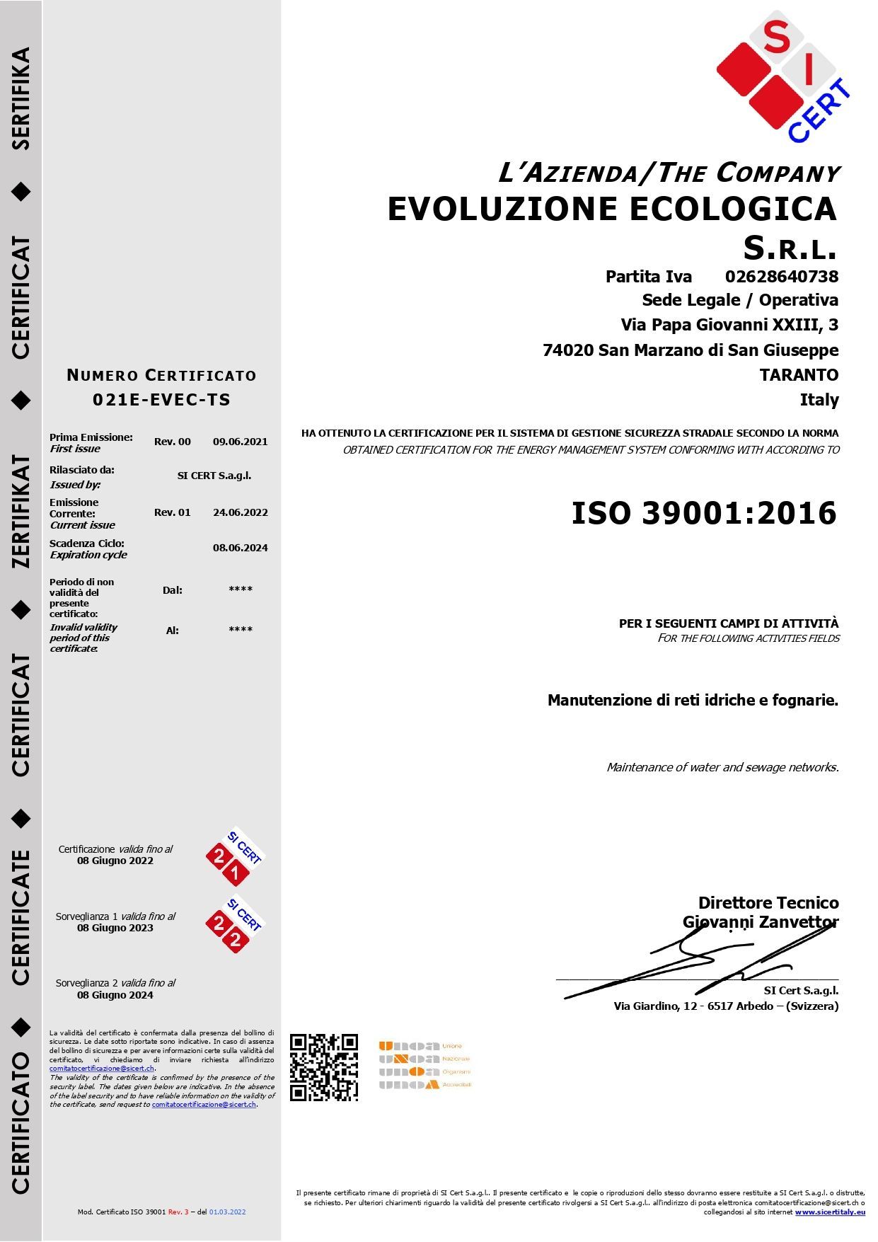 - UNI EN ISO 39001:2016;