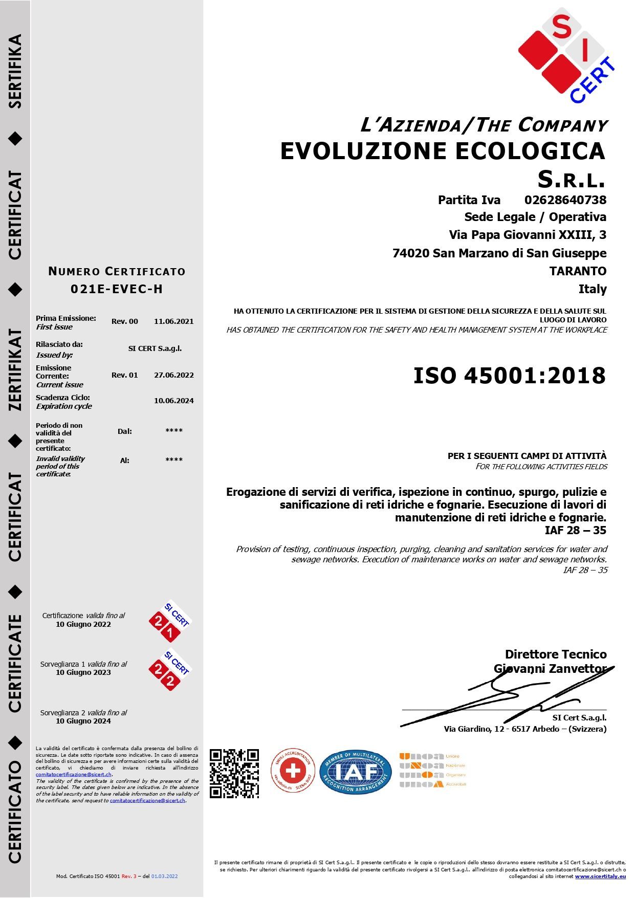 - UNI EN ISO 45001:2018;