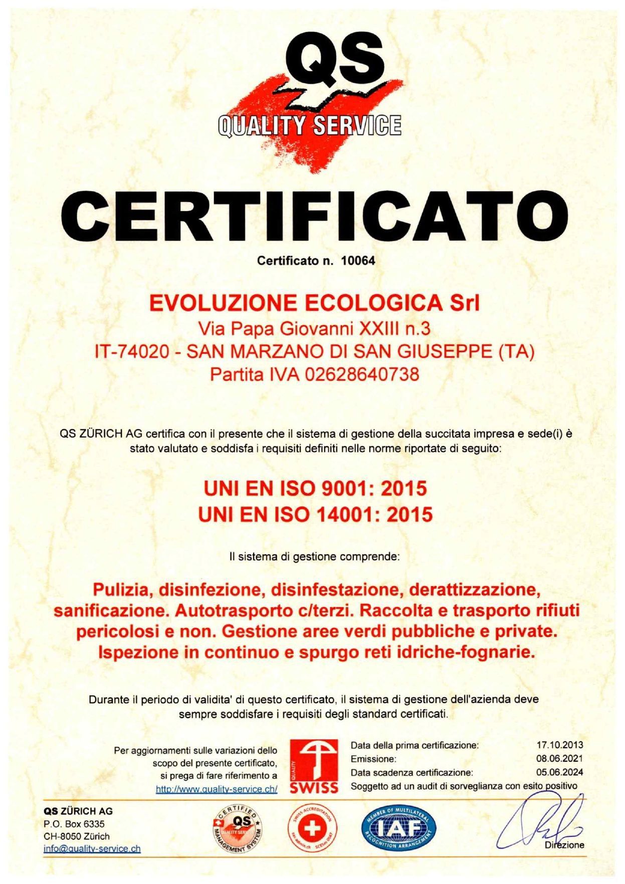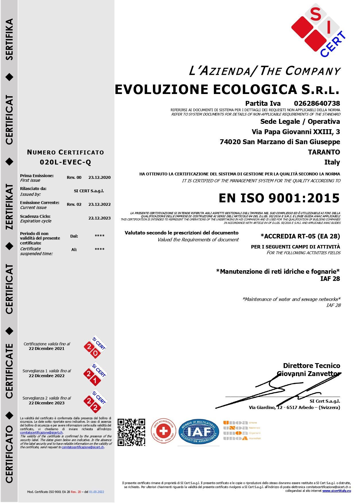 - UNI EN ISO 9001:2015;