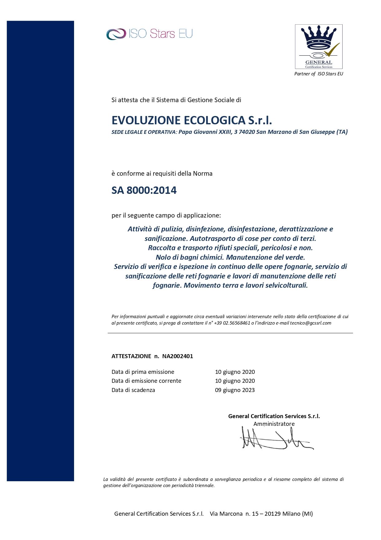 E' iscritta all'Albo Nazionale Gestori Ambientali al Numero BA/04389 per le seguenti categorie e classi: